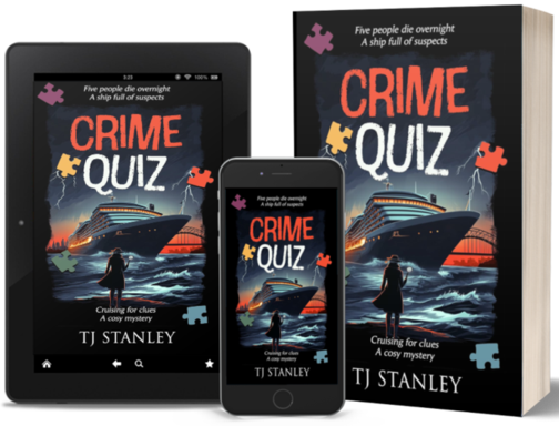 Crime Quiz: Cruising for Clues by T.J. Stanley is a fun who-dun-it set on a five-day mystery-writing-themed voyage from Sydney to Hobart and back. Inspired by an actual occurrence, the deaths of five passengers onboard a cruise ship overnight, the story features the events before and after the discovery of the fictional deceased during a major at sea.
