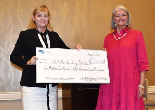 Dallas Symphony Orchestra League (DSOL) President Nancy Labadie presented a check for $1,250,000 to Kim Noltemy, Ross Perot President and CEO of the Dallas Symphony Orchestra. at the DSOL’s Finale Tea and Awards at Royal Oaks Country Club.